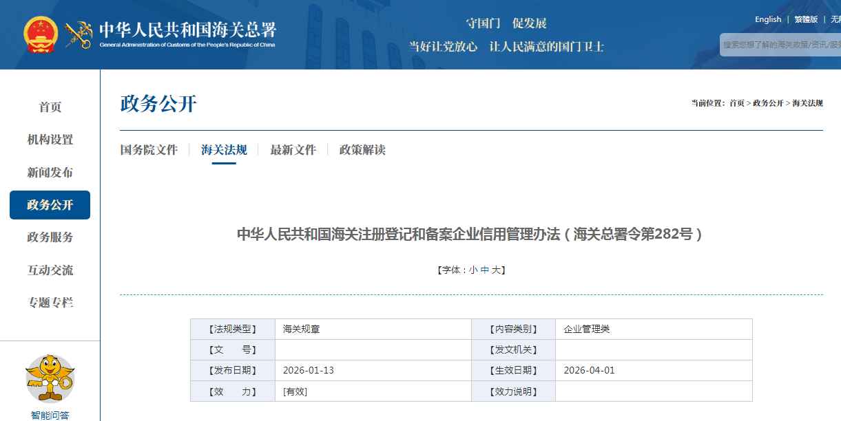 中华人民共和国海关注册登记和备案企业信用管理办法(海关总署令第282号)